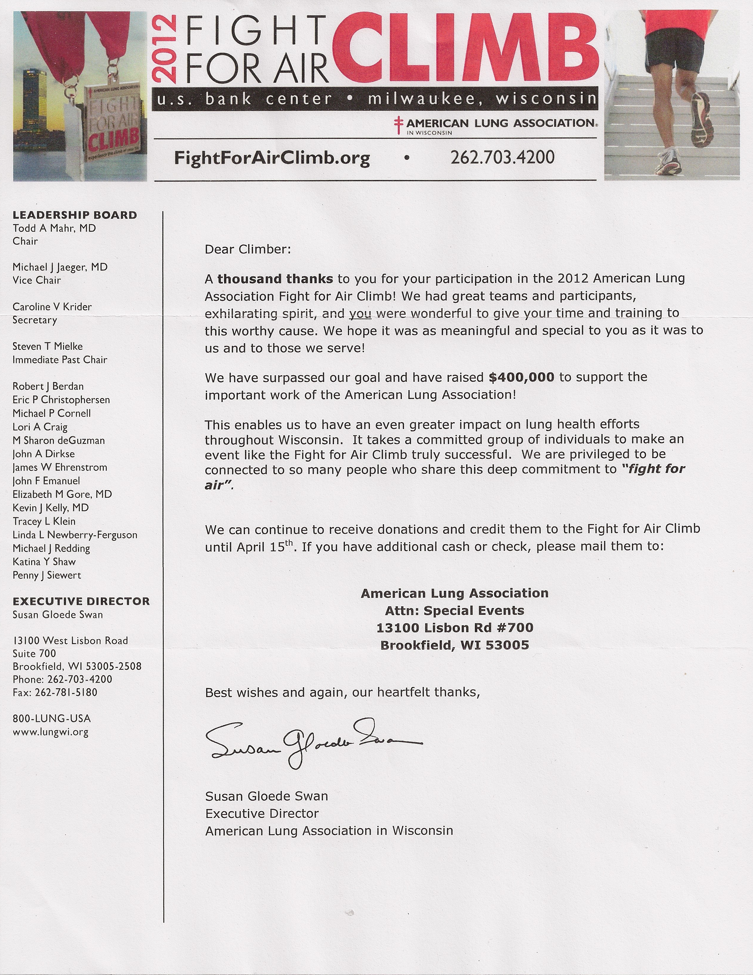 Thanks to you, I raised $500 to support the mission of the American Lung Association.